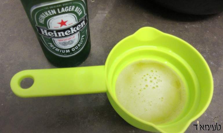 מגישים עם הבירה שהכנתם איתה את ההמבורגר