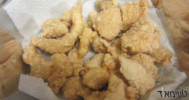 • מטגנים את הנתחים עד שהם מזהיבים ומוציאים לנייר סופג.