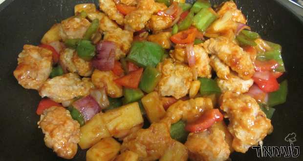 חזה עוף עם פלפלים ואננס ברוטב מתוק חריף
