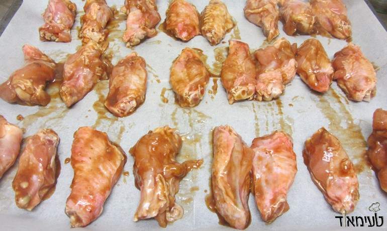 • מסדרים את הכנפיים על נייר אפיה עם רווחים בין כל כנף.