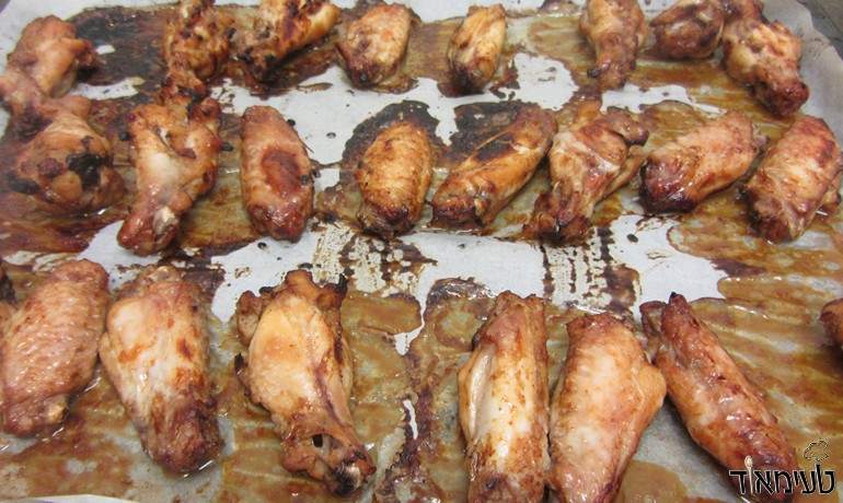 • מכניסים לתנור ב190 מעלות ל30 דקות כשאחרי 15 דקות הופכים את הכנפיים באמצעות מלקחיים.