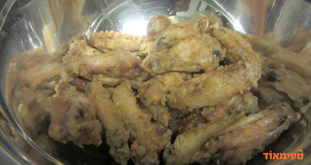• מסננים את הכנפיים מהמים ומעבירים לקערה ומחכים 15 דק' שיצטננו מעט.