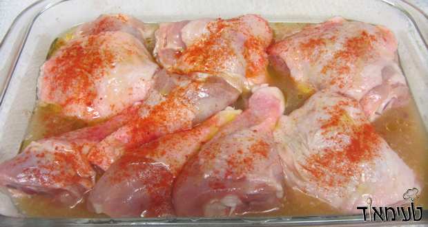 - מפזרים מעט פפריקה מתוקה על כל נתח של עוף.