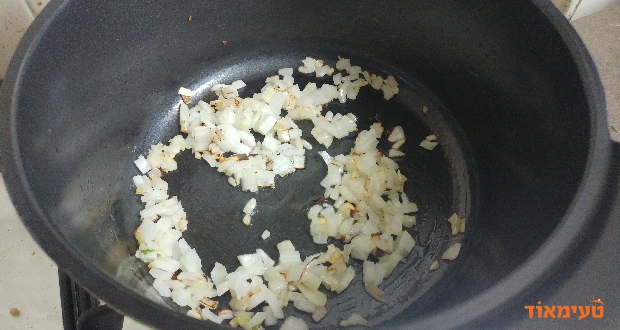- כשהשמן חם מוסיפים את הבצל ומטגנים עד שהוא מתחיל להזהיב.