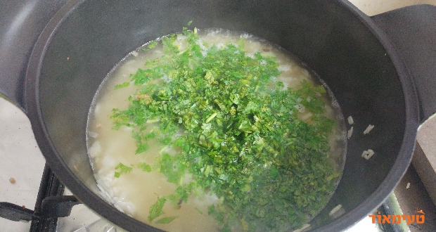 - קוצצים את הכוסברה (ללא הגבעולים).
