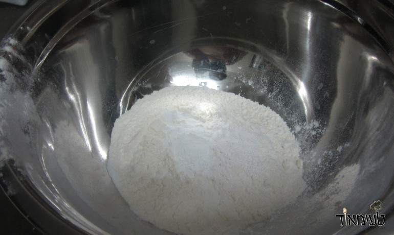 • מערבבים בקערה את הקמח, המלח ואבקת האפייה.