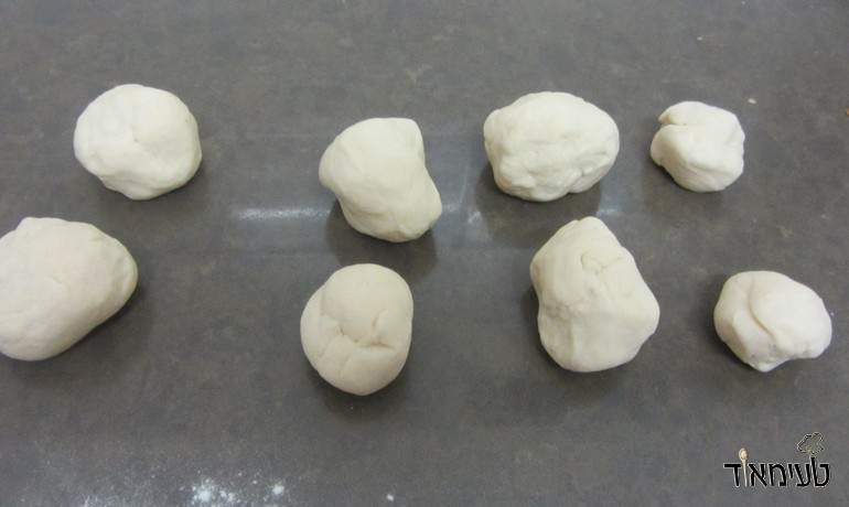 • מגלגלים את הבצק לגליל ומחלקים אותו ל8 חלקים.