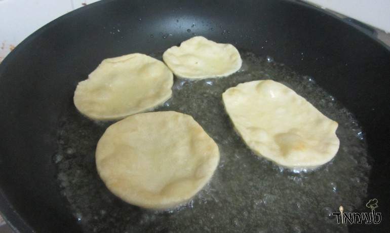 • טגנו 2-3 דקות מכל צד עד שהם מזהיבים. אם צומחות בועות - נסו למעוך אותן בעזרת מרית.