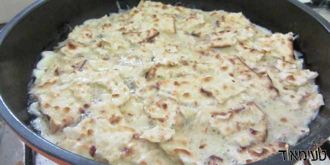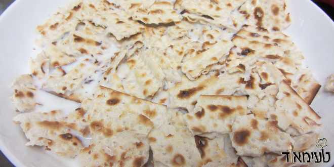 - מוסיפים את החלב ודואגים שכל חתיכות המצה שקועות בחלב ומשרים ל10 דקות.