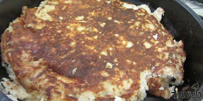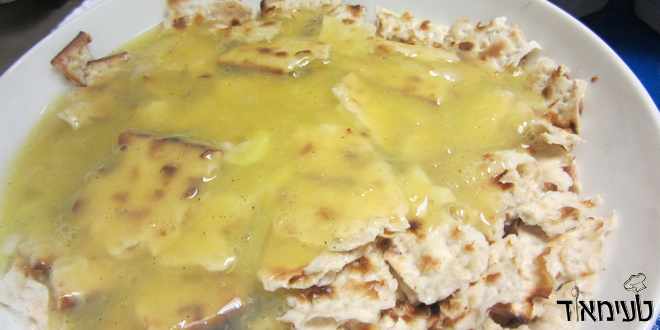 - מוסיפים את בלילה המצות והביצים ודואגים שהכל יהיה בשכבה בגובה אחיד במחבת.